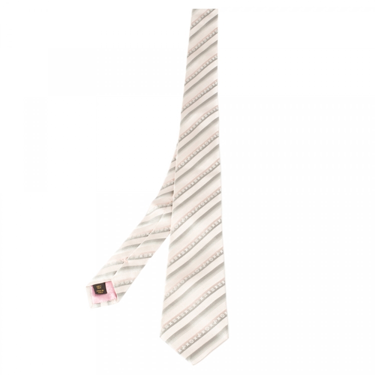 Pre Owned ربطة عنق لوي فيتون حرير مخططة دياغونال وردية فاتحة