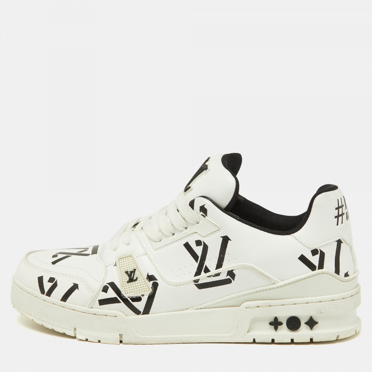 Louis Vuitton White/Black Monogram Faux Leather LV Trainer Sneakers Size 41