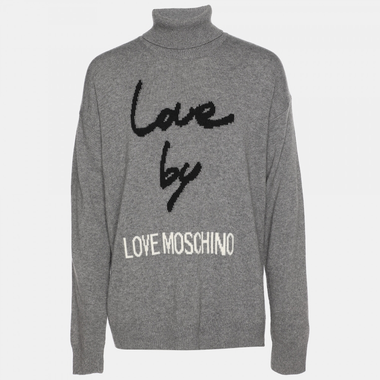 مملوكة مسبقًا Love Moschino Grey Rib Knit Turtle Neck Sweater L