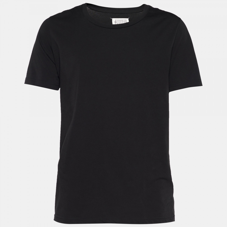 مملوكة مسبقًا تي شيرت ميزون مارتين مارغيلا قطن أسود برقبة مستديرة مقاس كبير جدًا - إكس لارج