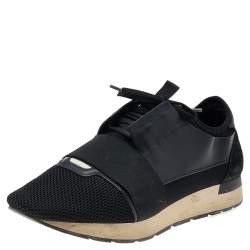 حذاء رياضي بالنسياغا ريس رانر جلد وشبك أسود بعنق منخفض مقاس 44