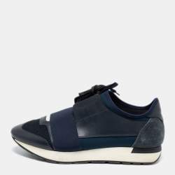 حذاء رياضي بالنسياغا رايس رونر قماش تريكو وجلد أزرق عنق منخفض مقاس 41
