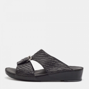 صندل فلات إرمينيغيلدو زينيا حزام من الجلد المنسوج أسود مقاس 39