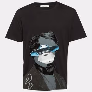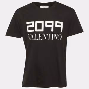 تي شيرت فالنتينو أسود قطن مطبوع تايم ترافلر أندركوفر مقاس متوسط
