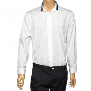 قميص ديور قطن أبيض بأكمام طويلة مقاس متوسط - ميديوم