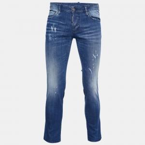 بنطلون جينز ديسكوارد2 ضيق بتأثير طلاء ممزق دنيم مغسول غامق أزرق مقاس صغير خصر 32"