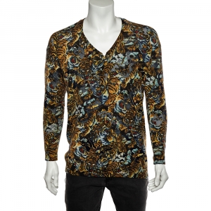 تي شيرت فيرساتشي كوليكشن جيرسيه طباعة فهد وباروك رصاصي مقاس كبير جداً جداً ( إكس إكس لارج )