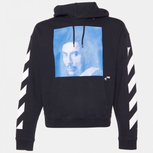 هودي بالنسياغا قطني بطبعة الشعار أسود مقاس متوسط