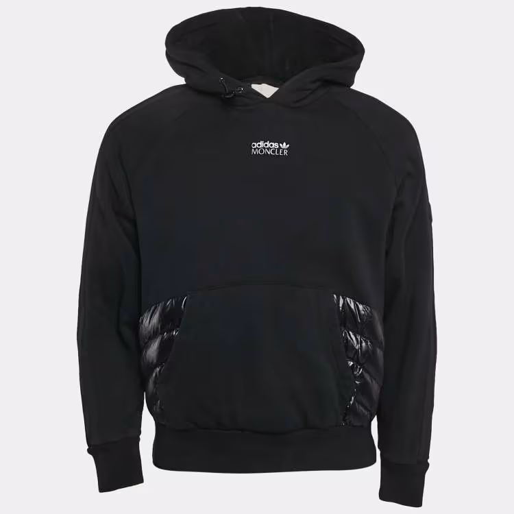 مملوكة مسبقًا هودي مونكلير x أديداس تريم مبطن محبوك قطني أسود مقاس صغير جداً