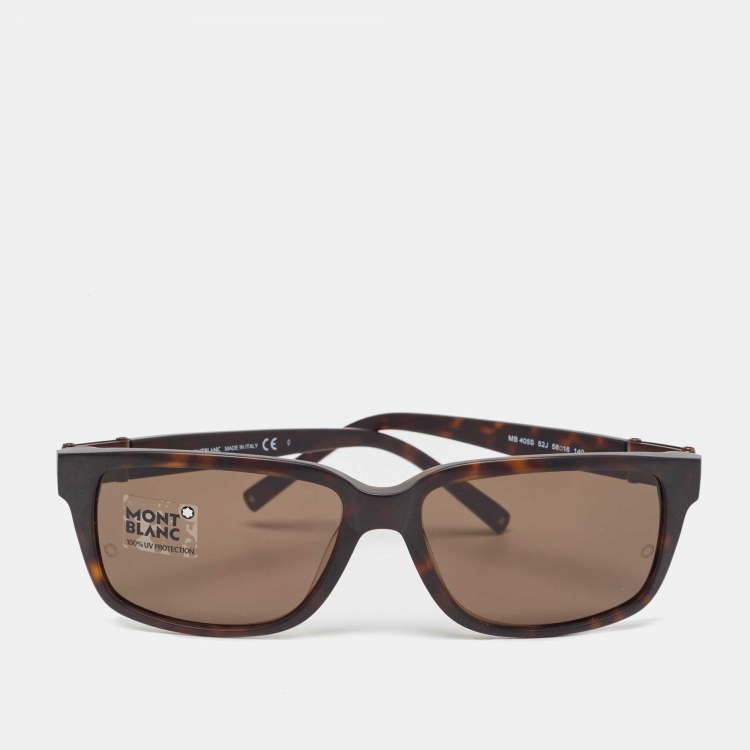 Pre Owned Montblanc Brown Tortoise MB405S Rectangular Sunglasses