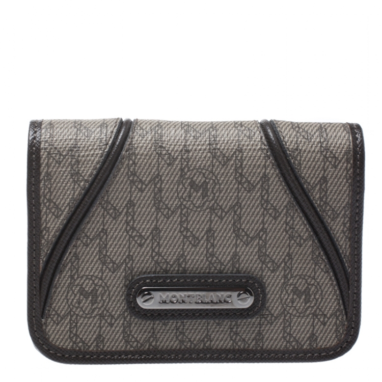 Pre Owned محفظة بطاقات مون بان كانفاس مقوى بني داكن/ بيج بالشعار بقلاب