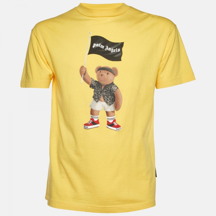 مملوكة مسبقًا تِي شيرت بالم آنجلز رقبة مستديرة قطن بطبعة تيدي أصفر مقاس صغير