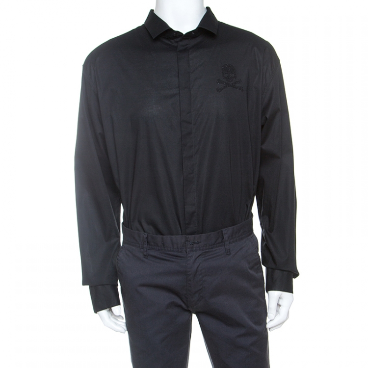 Pre Owned قميص فيليب بلين مزخرف قصه بلاتنيوم قطن أسود 5XL