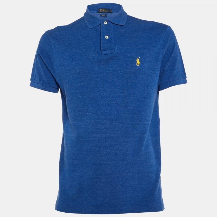 مملوكة مسبقًا تـي شـيـرت بولو رالف لورين قطن أزرق مطرز بشعار بولو بقصة ضيقة مقاس كبير (لارج)