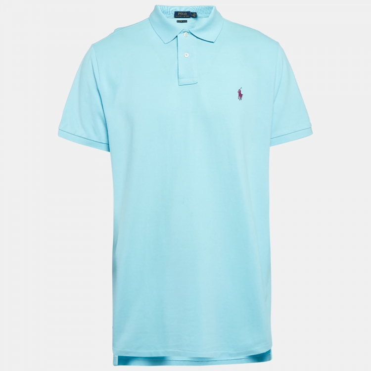 Pre Owned تـي شـيـرت بــولـو رآلـف لـوريـن بيكيه قطن أزرق بقصّة ضيّقة مخصّصة مقاس كبير جداً (إكس لارج)