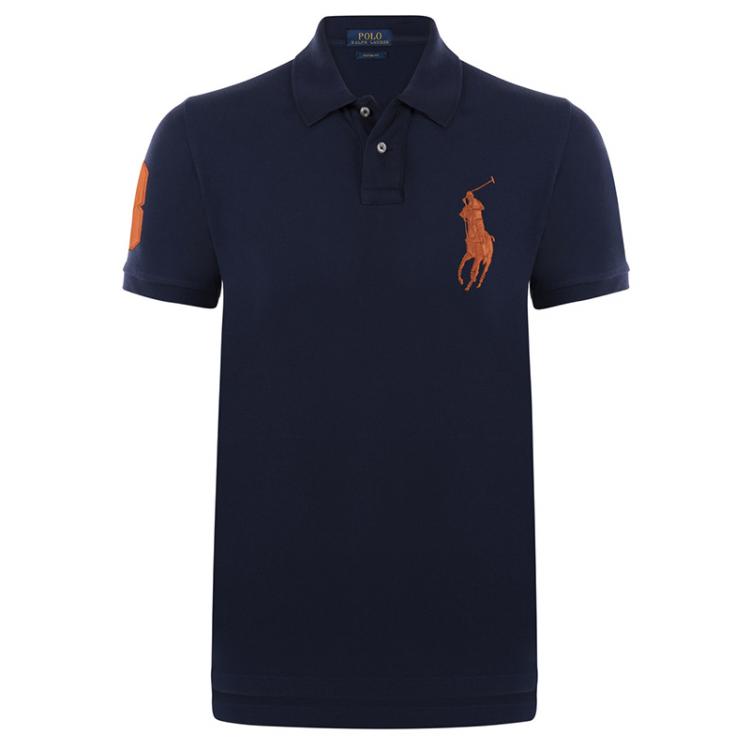 تي شيرت بولو رالف لورين شعار برتقالي/ أزرق كحلي S