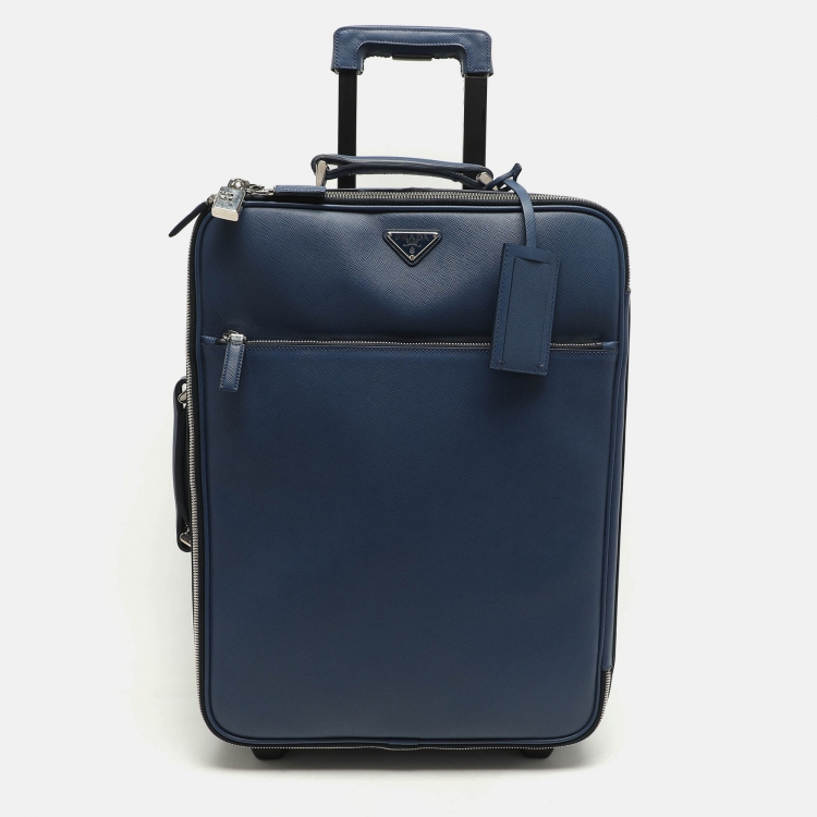 Prada Blue Saffiano Leather Travel Rolling Trolley Luggage