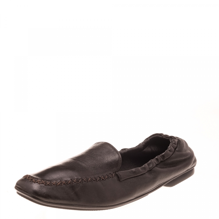 Pre Owned حذاء لوفرز برادا جلد مجعد بني داكن سليب أون مقاس 39.5