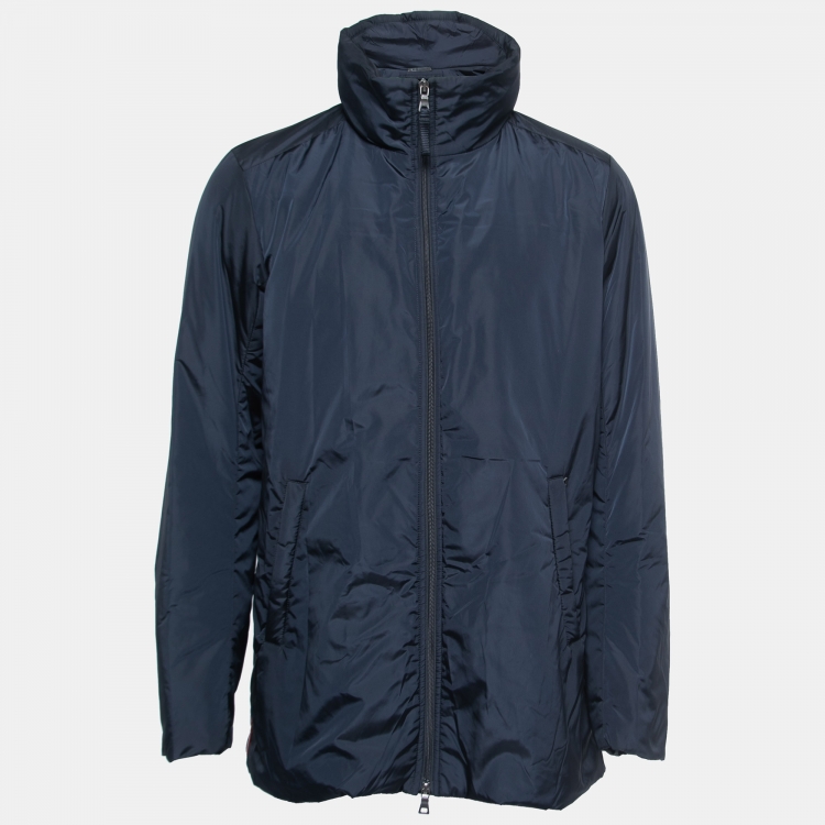 مملوكة مسبقًا Prada Navy Blue Nylon Zip Front Jacket L