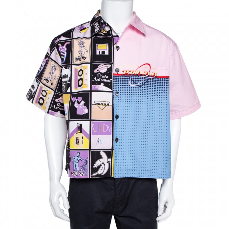مملوكة مسبقًا قميص برادا باتشورك قطن مطبوع وردي XL