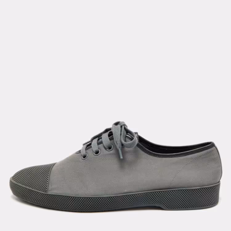 Pre Owned حذاء رياضي برادا  سليب أون مطاط وكانفاس أسود/رصاصي مقاس 46