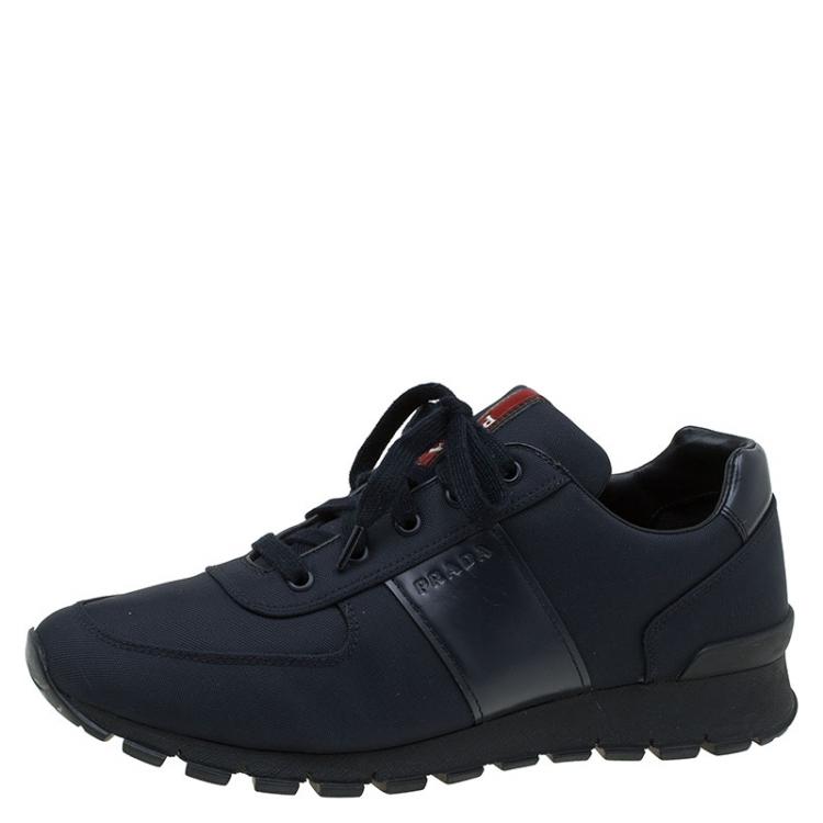 مملوكة مسبقًا حذاء رياضي برادا سبورت جلد وكانفاس أزرق داكن مقاس 43