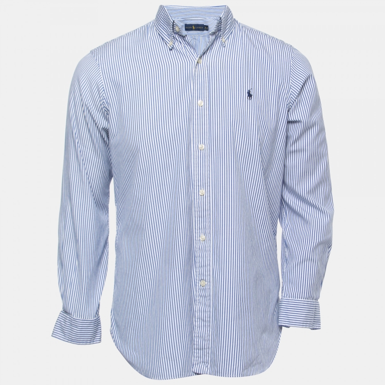 Pre Owned Ralph Lauren White/Blue Striped Cotton Full Sleeve Shirt S