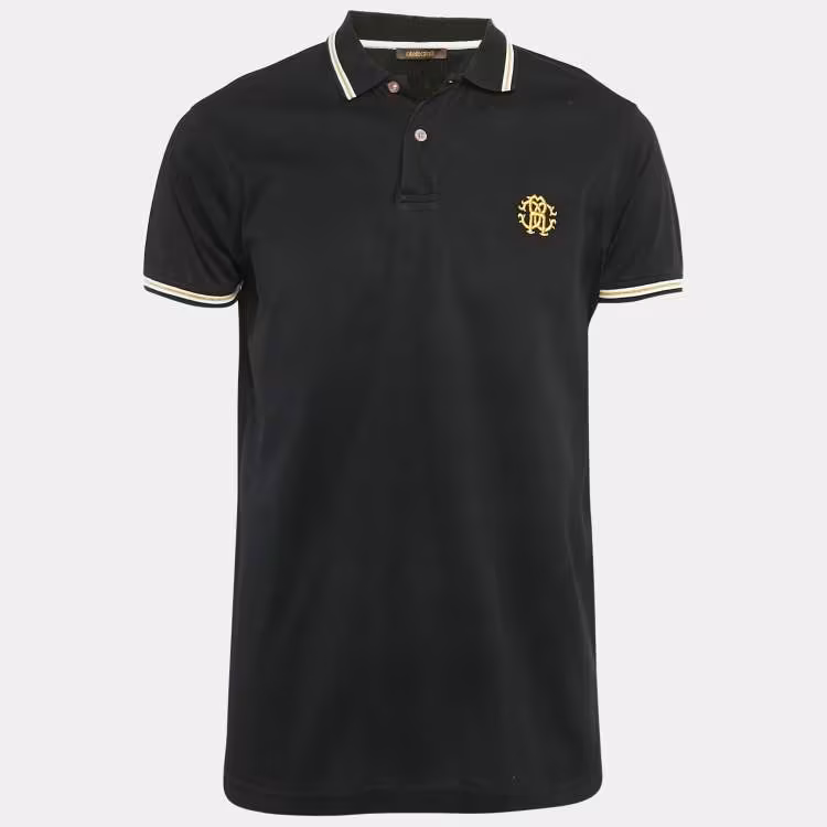 Pre Owned تي شيرت روبيرتو كافالي بيكيه قطن أسود مقاس كبير