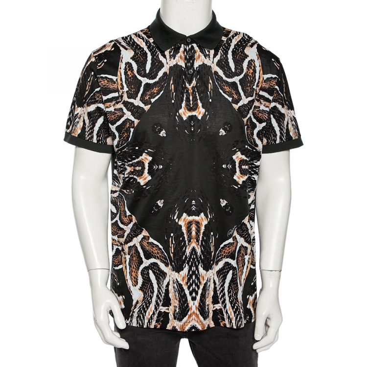 مملوكة مسبقًا تي شيرت بولو روبرتو كافالي قطن أخضر داكن نقشة الفهد تجريدية مقاس كبير جداً جداً (اكس اكس لارج)