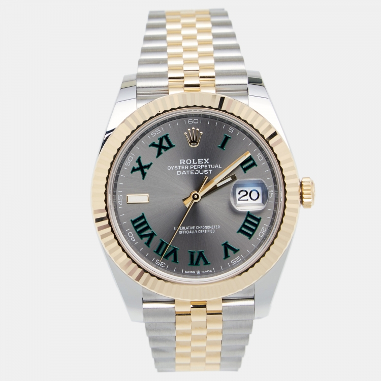 مملوكة مسبقًا Rolex Slate 18K Yellow Gold Stainless Steel Datejust M126333-0020 Men's Wristwatch 41 mm