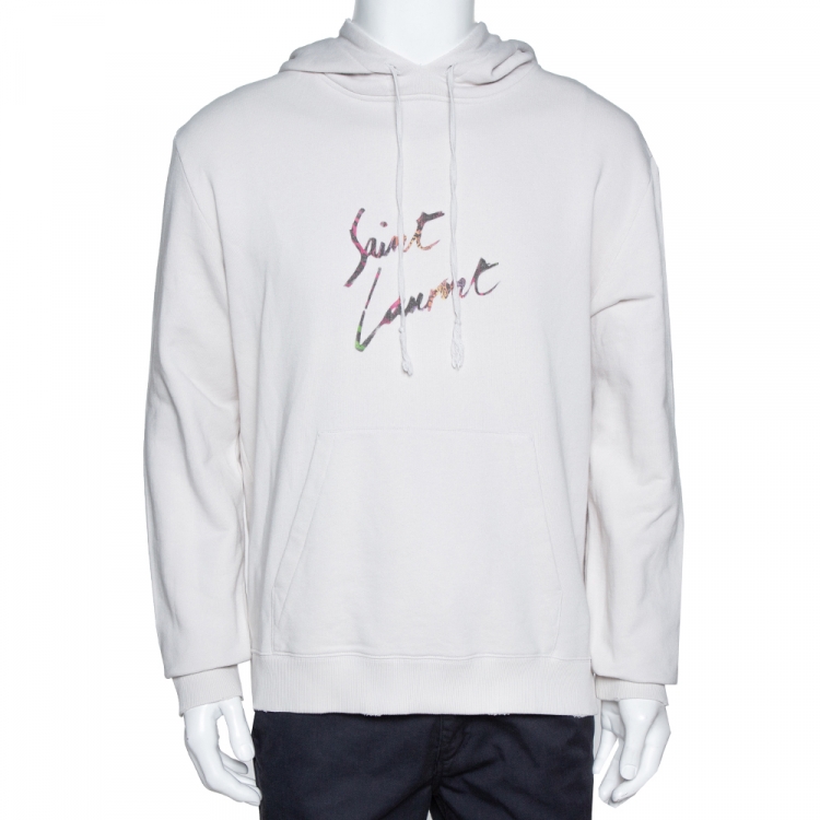 Pre Owned سويت شيرت بهودي سان لوران باريس مزين شعار الماركة ممزق قطن بيج مقاس كبير (لارج)