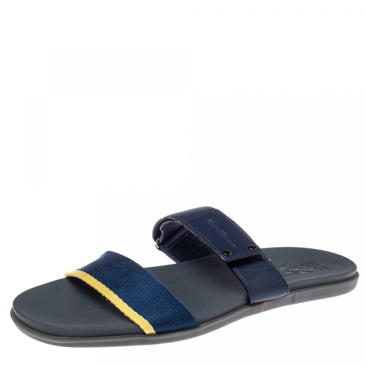 صندل سلايد سالفاتورى فيراغامو كانفاس وجلد أزرق مقاس 44