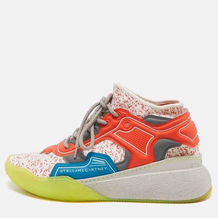 مملوكة مسبقًا حذاء رياضي ستيلا مكارتني مدرب جلد صناعي وقماش محبوك متعدد الألوان برباط مقاس 43