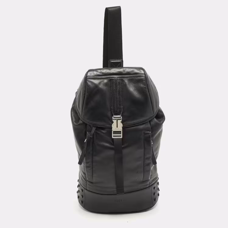 Pre Owned حقيبة ظهر برباط وغطاء جلد أسود تودز