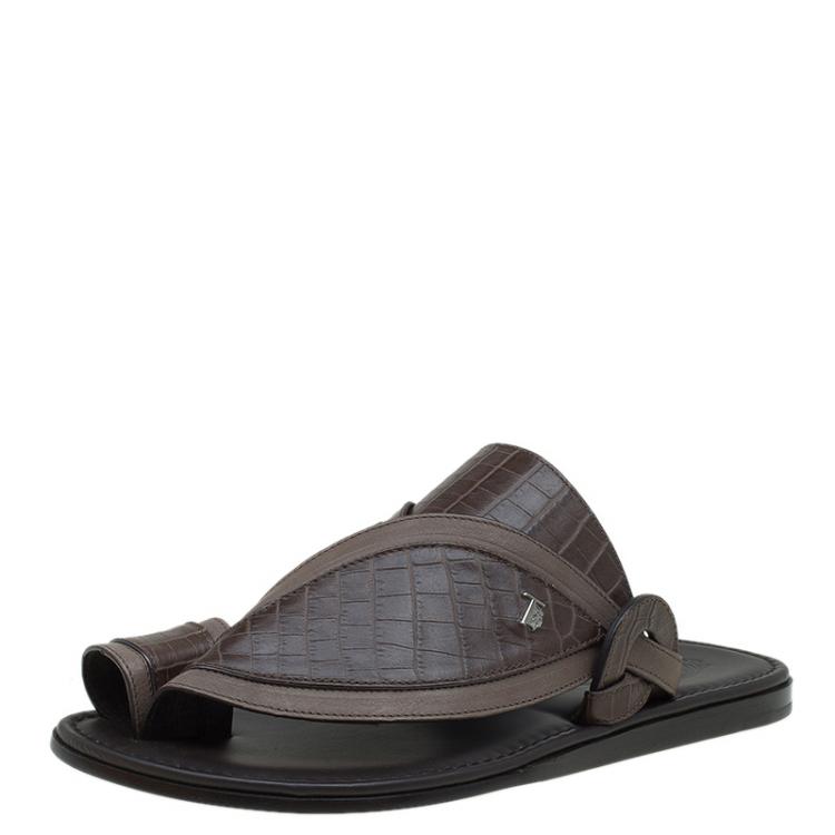 Pre Owned صندل تودز جلد بني نقشة التمساح مقاس 41