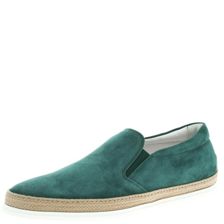 Pre Owned حذاء إسبادريل رياضي تودز سويدي أخضر نمط سليب-أون مقاس 42