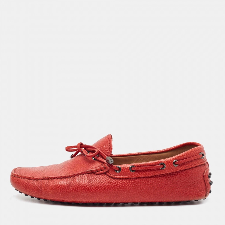 Tod's Red Leather Bow Slip On Loafers Size 44