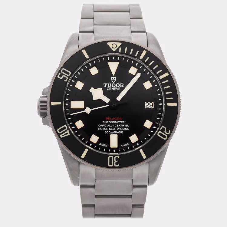 Pre Owned ساعة يد رجالية تودور بيلاجوس LHD 25610TN أوتوماتيكية سوداء تيتانيوم 42 مم مملوكة مسبقًا.