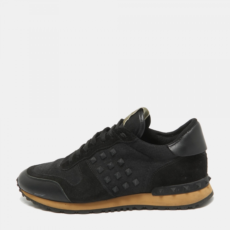 Valentino Black Canvas and Suede Rockstud Low Top Sneakers Size 42