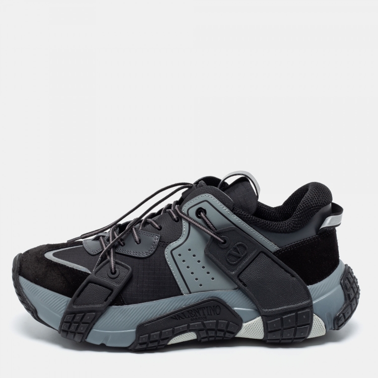 Pre Owned حذاء رياضي فالنتينو VLTN Wod سويدي وقماش رصاصي/أسود بعنق منخفض مقاس 39
