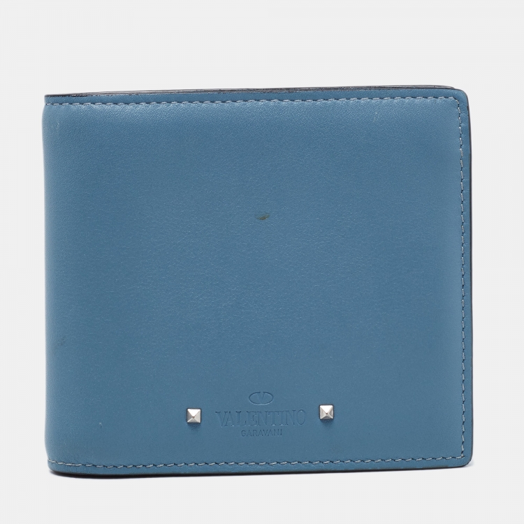 Pre Owned محفظة فالنتينو روكستد ثنائية الطي جلد أزرق كحلي