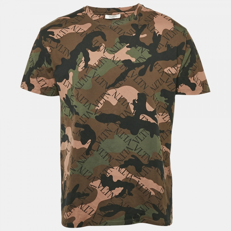 تي شيرت فالنتينو جيرسي رقبة دائرية بنمط مموه أخضر مقاس صغير