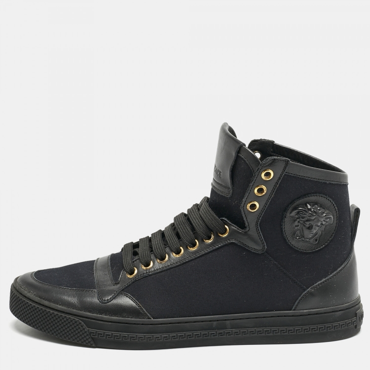 حذاء رياضي فيرساتشي كانفاس وجلد أسود ميدوسا بحافة مرتفعة مقاس 42