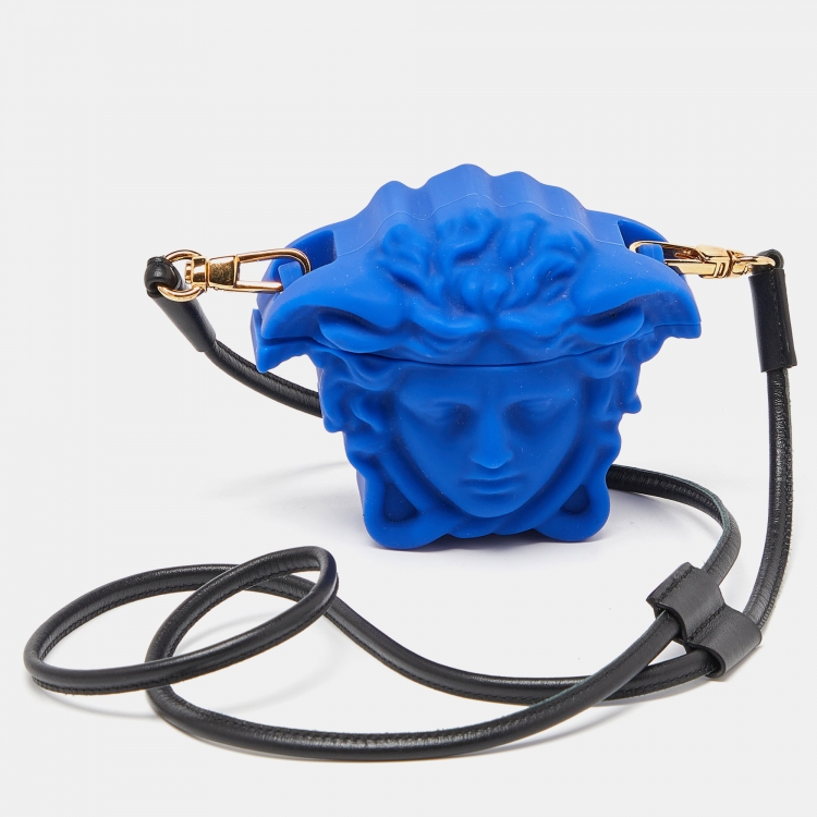 Pre Owned Versace Blue Rubber La Medusa Airpods Case