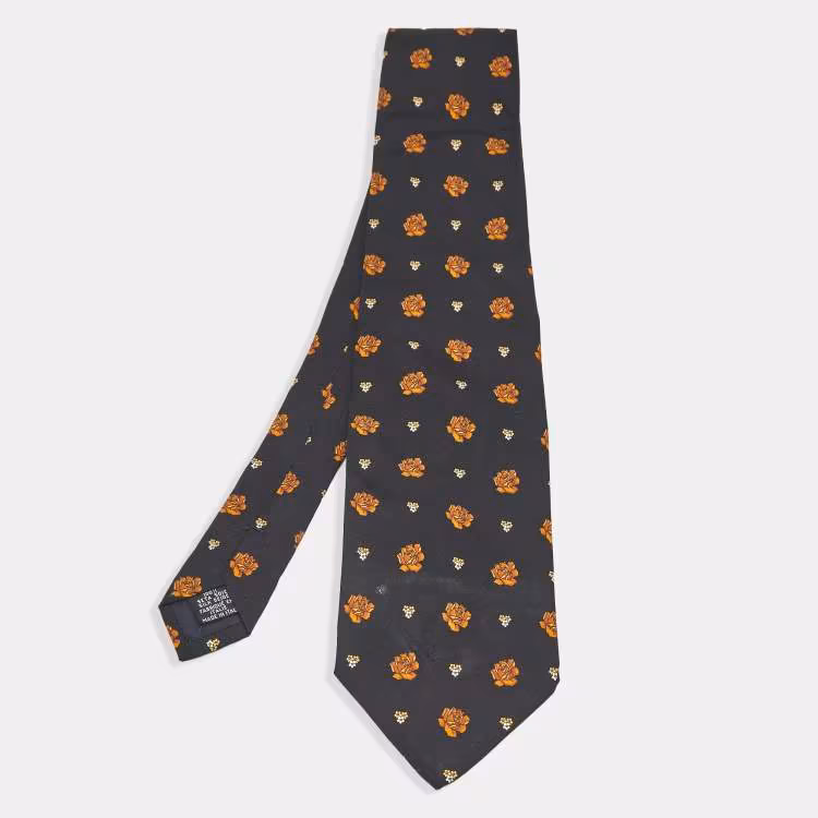 ربطة عنق سان لوران حرير منقوش عنابي