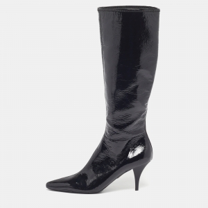 حذاء بوت برادا سويدي بني داكن طي طول الركبة مقاس 40