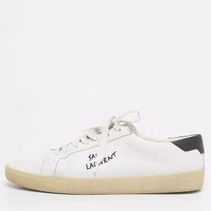 حذاء رياضي سان لوران جلد أبيض بعنق منخفض مقاس 43