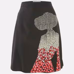 تنورة ميني سان لوران باريس حرير بنقشة حيوانات سوداء مقاس صغير (سمول)