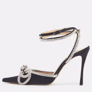 صندل ميو ميو جلد محبب يشبه السحلية أسود مزخرف بالكريستال بحزام للكاحل مقاس 39