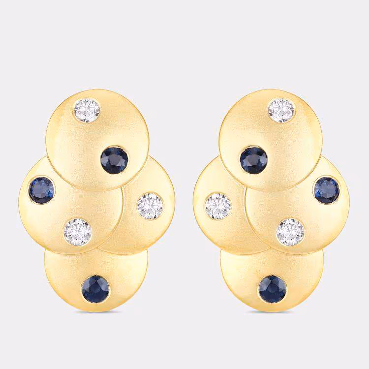 أقراط قرصية بطبقات بوزن 1.00 قيراط من الياقوت الأزرق والألماس بالذهب الأصفر عيار 14
